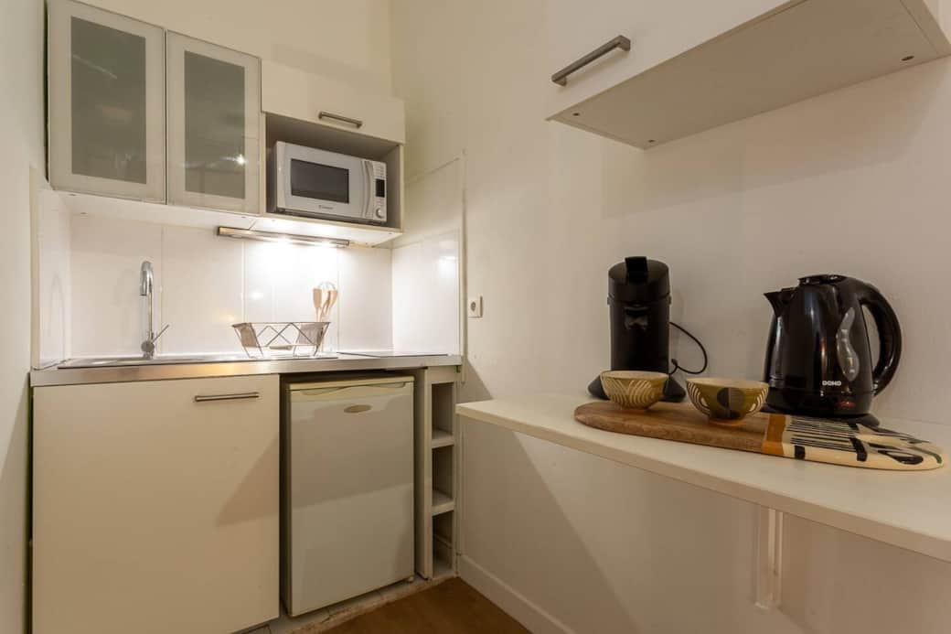 Cafetière, Ustensiles de cuisine, Kitchenette, Micro-ondes, Réfrigérateur